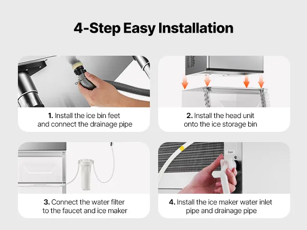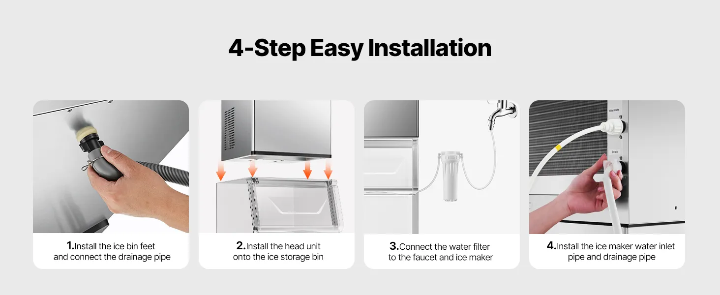 The ice maker is easy to install, and the gravity drainage design ensures quick and efficient water discharge.