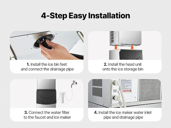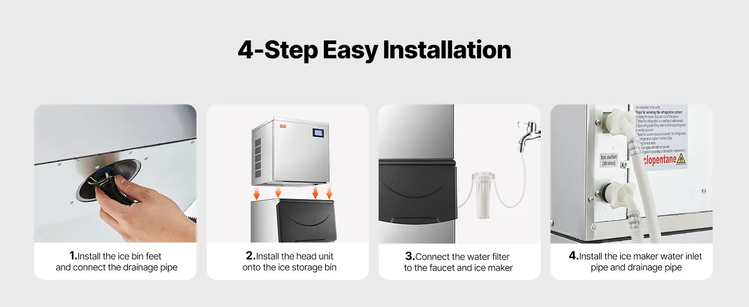 The ice maker is easy to install, and the gravity drainage design ensures quick and efficient water discharge.