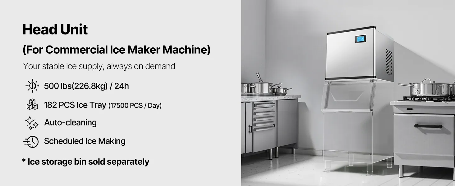 Commercial ice makers typically consist of two main parts: the ice-making head unit and the ice storage bin. This design provides enhanced flexibility and efficiency, making it ideal for businesses, home kitchens, or specialized applications.