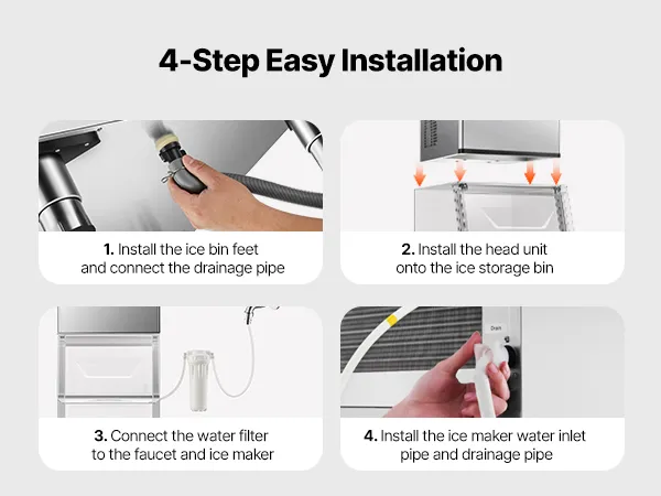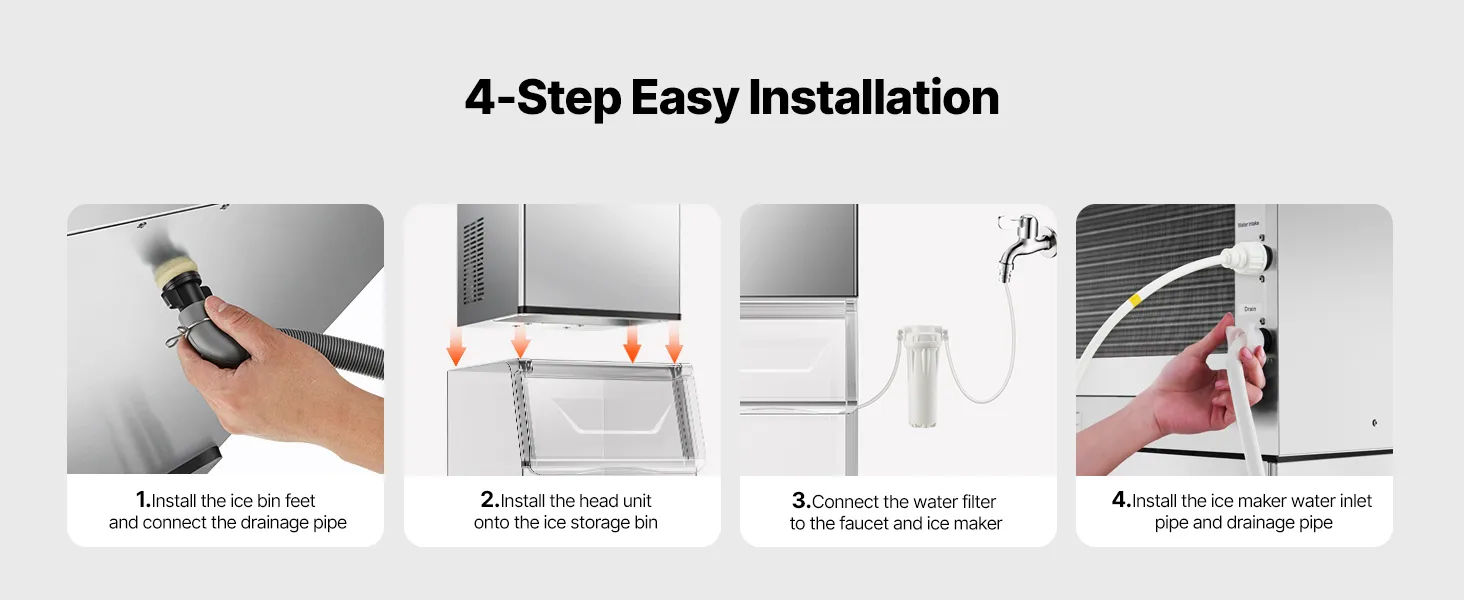 The ice maker is easy to install, and the gravity drainage design ensures quick and efficient water discharge.