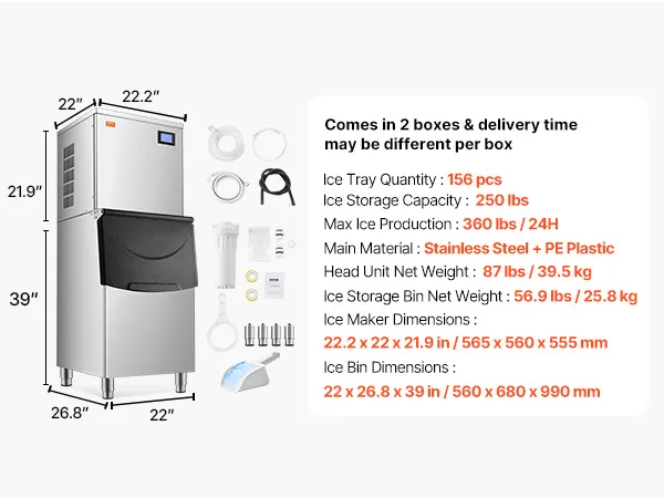 Commerciële ijsmachines bestaan doorgaans uit twee hoofdonderdelen: de ijsmachinekop en de ijsbak. Dit ontwerp biedt meer flexibiliteit en efficiëntie, waardoor het ideaal is voor bedrijven, thuiskeukens of speciale toepassingen.