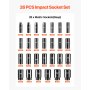 Deze metrische slagdoppenset bevat 26 diepe doppen. De maten variëren van 10 mm tot 36 mm. U hebt alle maten die u nodig hebt in één set. Er zijn geen overgeslagen maten. Dit maakt het zeer veelzijdig. Het kan worden gebruikt voor toepassingen in de auto-, thuis- en professionele sector. Deze 1/2-inch slagdoppenset zorgt ervoor dat u de juiste maat hebt voor elke klus. U hoeft niet te zoeken naar ontbrekende maten, want alles wat u nodig hebt, bevindt zich op één plek.