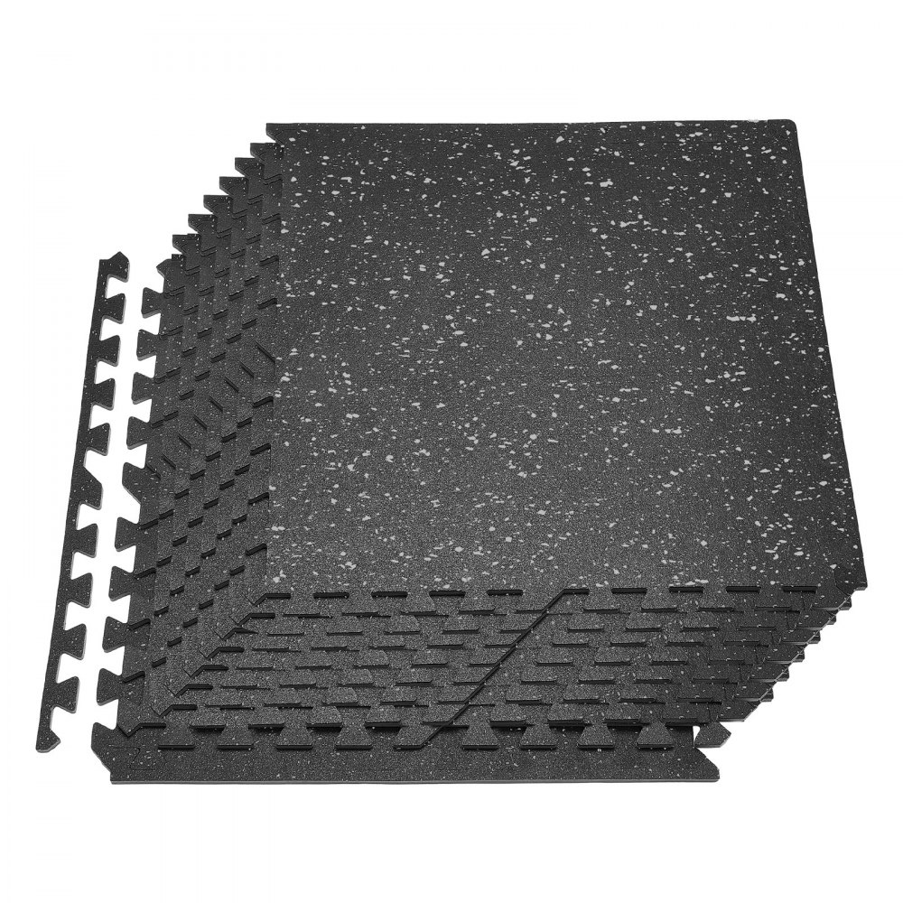 VEVOR Puzzle Exercise Mat, 12 PCS Fitness Equipment Mats, 610 x 610 x 10 mm, High-Density EVA Foam Mats Set, Interlocking Rubber Soft Tiles, Protective Floor Padding with Gray Dots for Home Gym Office