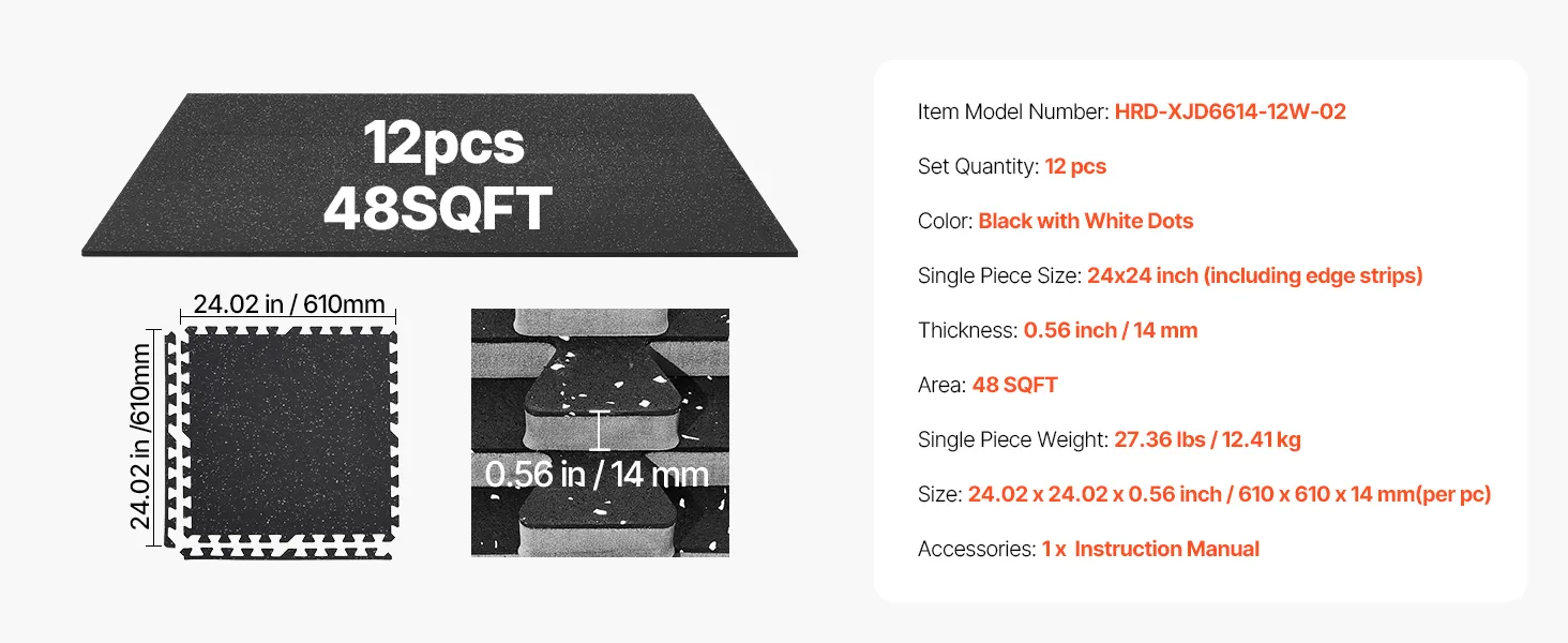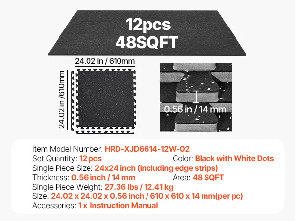 VEVOR 12 x Puzzelmat Vloerbeschermingsmat 610 x 610 x 14 mm, Hoogwaardige EVA-schuimmat, In elkaar grijpende fitnessmat, gymnastiekmat, sportmat, trainingsmat (zwart) met witte stippen