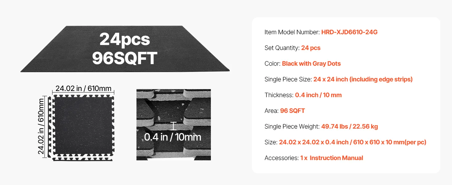 VEVOR 24 x Puzzelmat Vloerbeschermingsmat 61 x 61 x 1 cm, Hoogwaardige EVA-schuimmat, In elkaar grijpende fitnessmat, gymnastiekmat, sportmat, trainingsmat (zwart) met grijze stippen