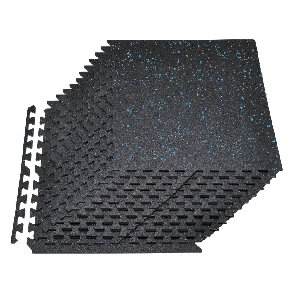 VEVOR Puzzle Exercise Mat, 24 PCS Fitness Equipment Mats, 610 x 610 x 14 mm, High-Density EVA Foam Mat Set, Interlocking Rubber Soft Tiles, Protective Floor Padding with Blue Dots for Home Gym Office