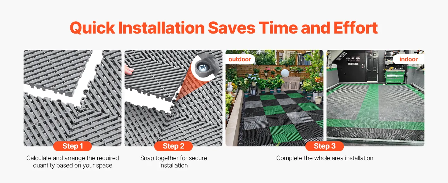 Vergrendelingssysteem: Dit modulaire, in elkaar grijpende kussen is eenvoudig te installeren en klikt stevig vast dankzij het unieke vergrendelingssysteem. U hebt geen ingewikkelde gereedschappen nodig en de installatie is eenvoudig, waardoor u tijd en moeite bespaart.