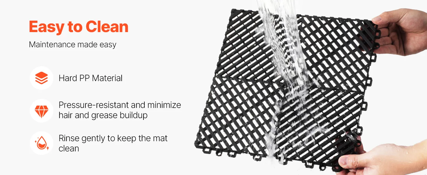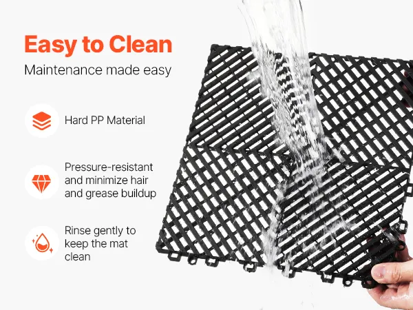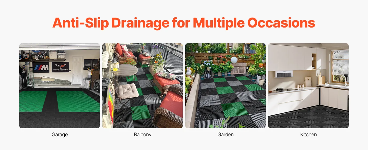 VEVOR Interlocking Drainage Mat, 12” x 12” Modular Interlocking Cushion, 24 Pcs Splicing Drainage Mats, Non-Slip Black PP Drainage Floor Tile and Shower Mat, for Garage, Garden, Kitchen & Outdoor VEVOR Interlocking Drainage Mat, 12” x 12” Modular Interlocking Cushion, 24 Pcs Splicing Drainage Mats, Non-Slip Black PP Drainage Floor Tile and Shower Mat, for Garage, Garden, Kitchen & Outdoor