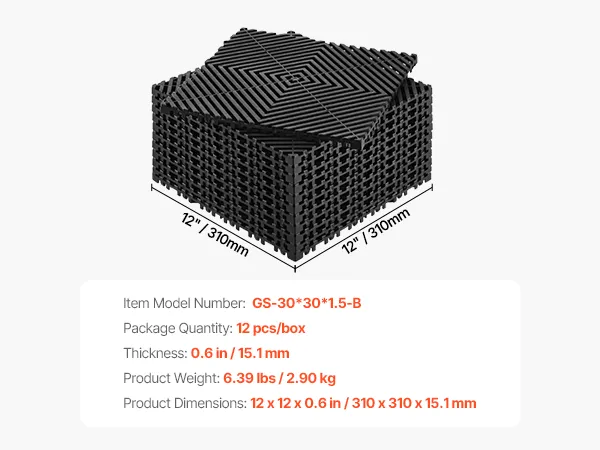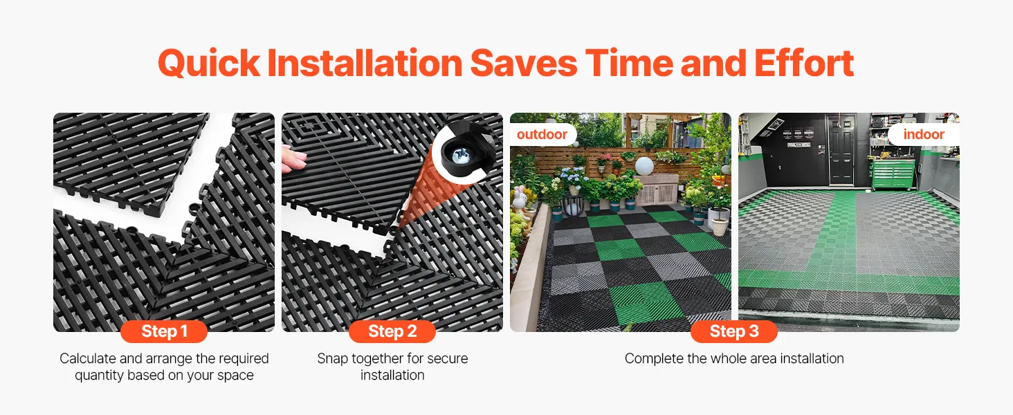 Vergrendelingssysteem: Ontworpen voor eenvoudige installatie, dit modulaire, in elkaar grijpende kussen vergrendelt veilig samen met zijn unieke vergrendelingssysteem. U hebt geen ingewikkelde hulpmiddelen nodig en de installatie is een fluitje van een cent, waardoor u tijd en moeite bespaart.