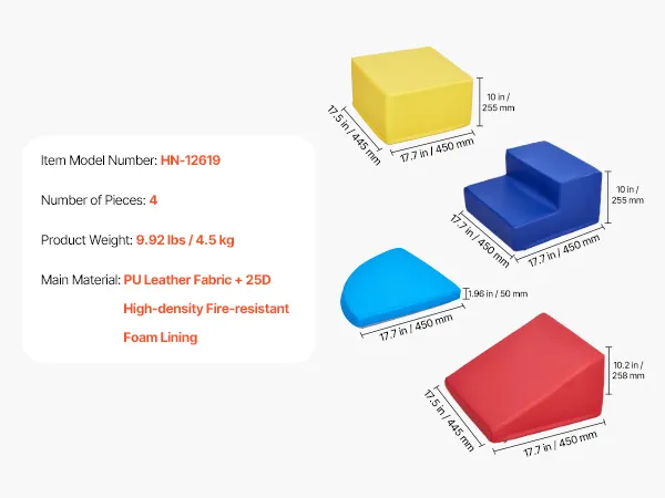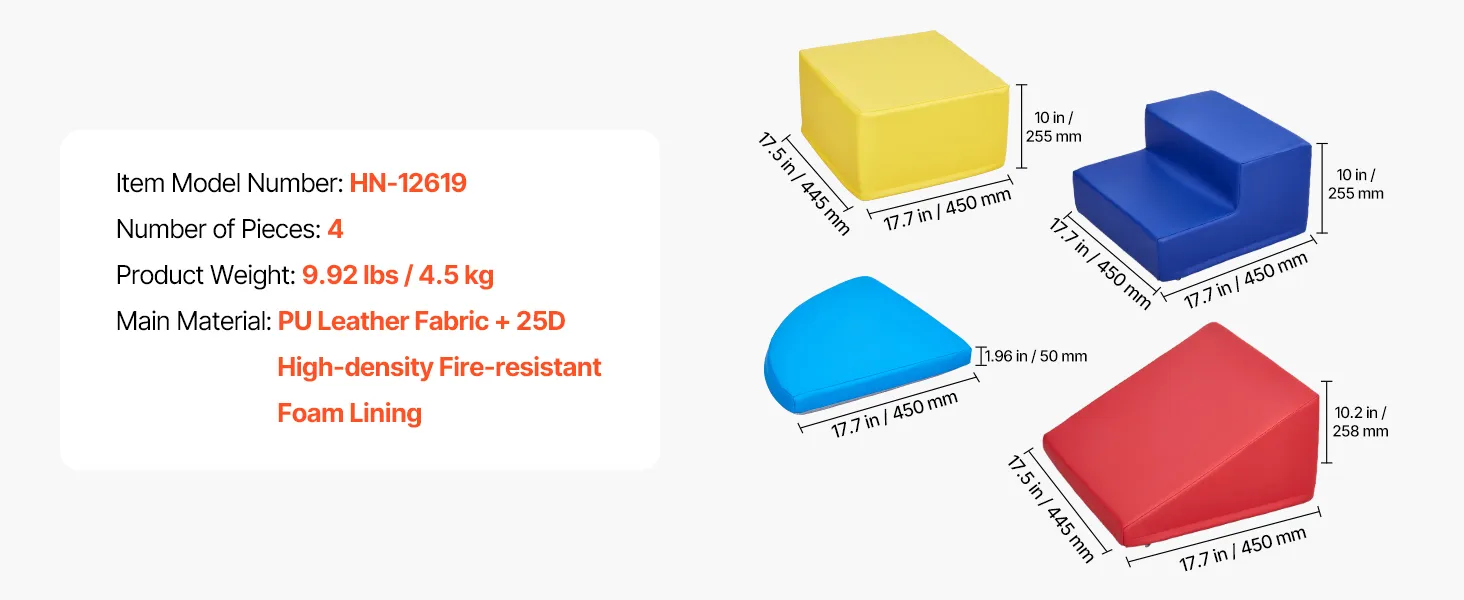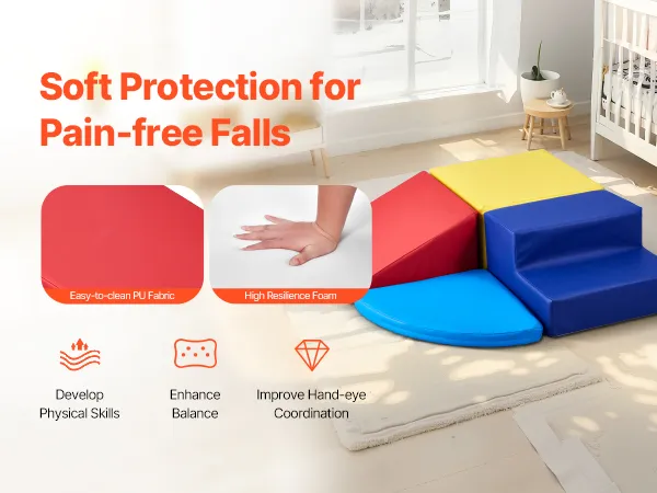 Soft and Resilient: The baby climbing blocks are equipped with soft PU fabric and filled with 25D high-density foam for excellent support, making them ideal for climbing or walking. This helps children develop body coordination and enhance motor skills. The foam absorbs impact, avoiding injury from falls. (Allow 48-72 hours after unpacking for full expansion.)