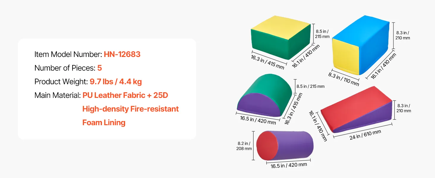 Soft and Resilient: The baby climbing blocks are equipped with soft PU fabric and filled with 25D high-density foam for excellent support, making them ideal for climbing or walking. This helps children develop body coordination and enhance motor skills. The foam absorbs impact, avoiding injury from falls. (Allow 48-72 hours after unpacking for full expansion.) NOTE: Need to put the foam into the leather case by yourself.