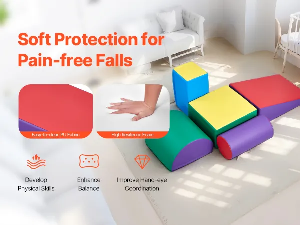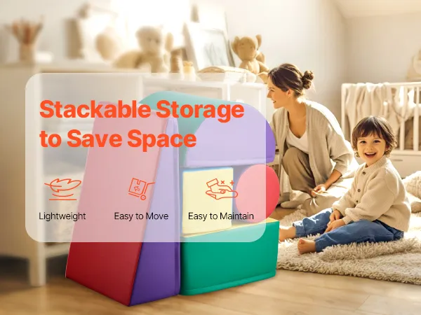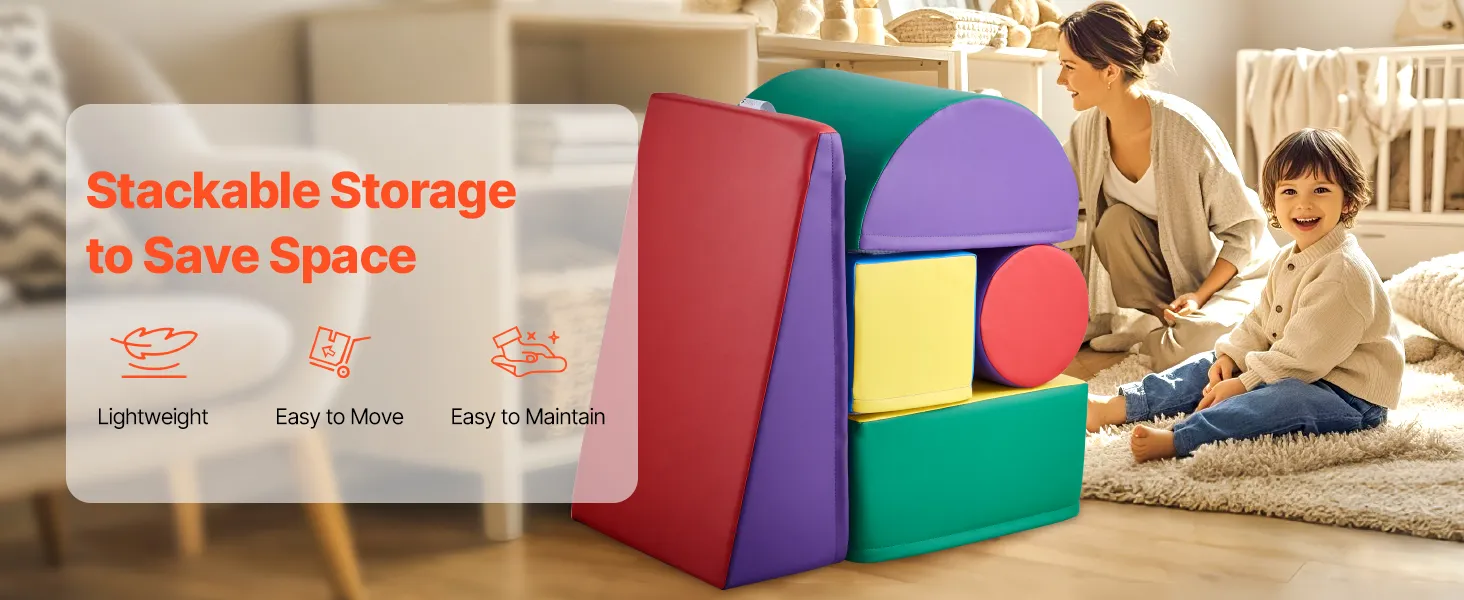 Easy to Clean and Store: The soft, breathable PU fabric provides excellent waterproof and stain-resistant properties. Simply wipe away dust and stains with a damp cloth (avoid bleach). The lightweight design of the soft climbing blocks allows the blocks to be stacked and stored away, saving space when not in use.