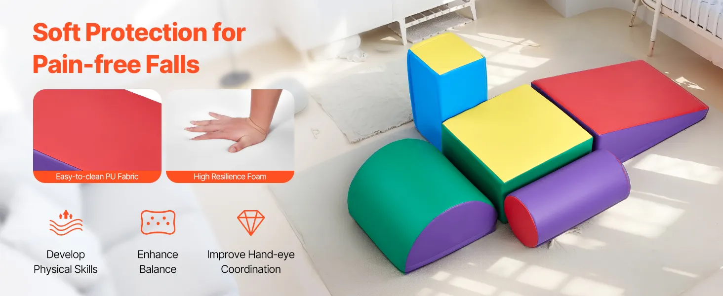 VEVOR Climbing Toys, 5-Piece Set, Foam Climbing Toys for Toddlers 6 Months to 3 Years Old, PU Leather Climbing Blocks, Indoor Climb and Crawl Activity Playset for Crawling & Sliding, Easy to Clean