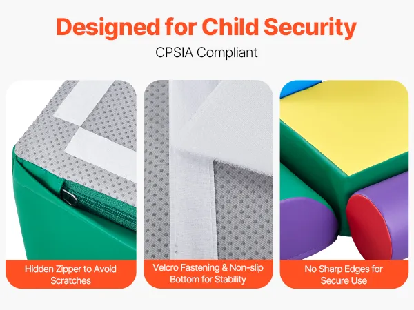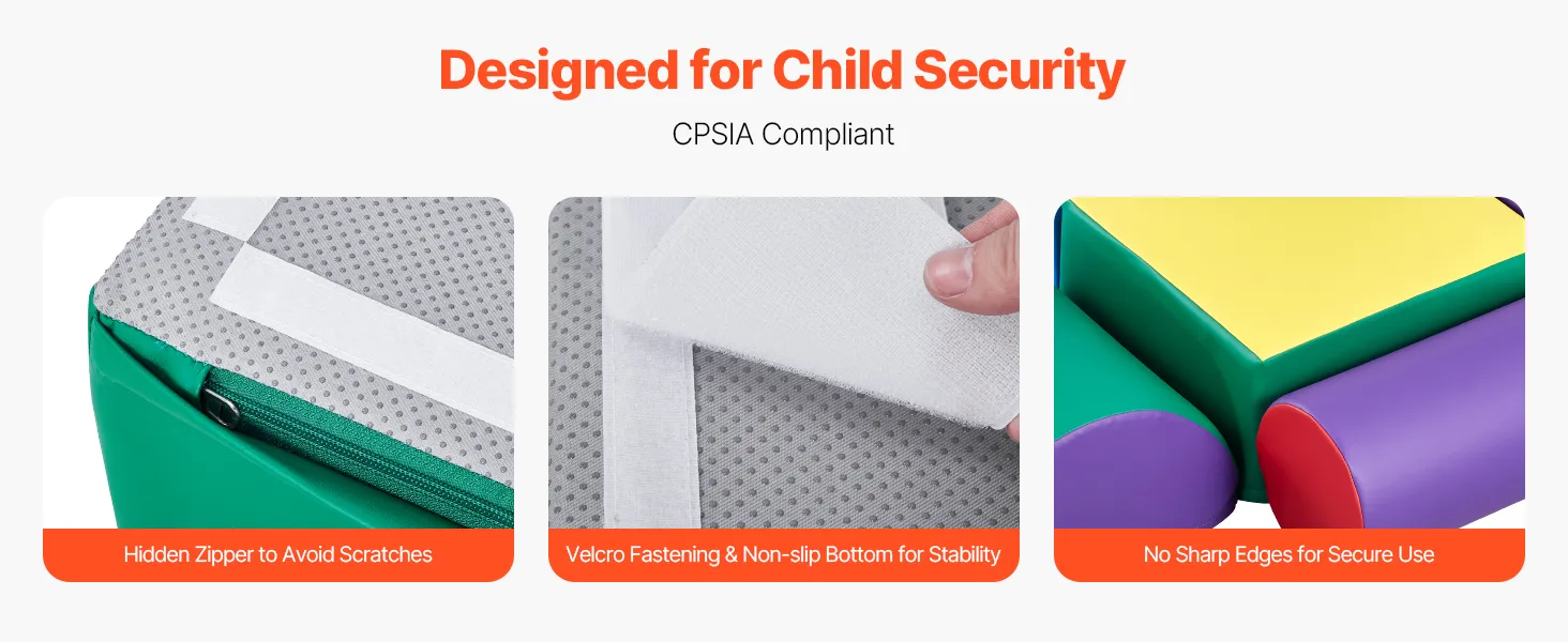 Child Security First: Compliant with U.S. CPSIA standards, the toddler foam climbing blocks are made with secure materials, low VOC, and do not release harmful chemicals, ensuring your child's security and health while playing. The foam blocks have no sharp edges and feature hidden zippers to secure delicate skin.