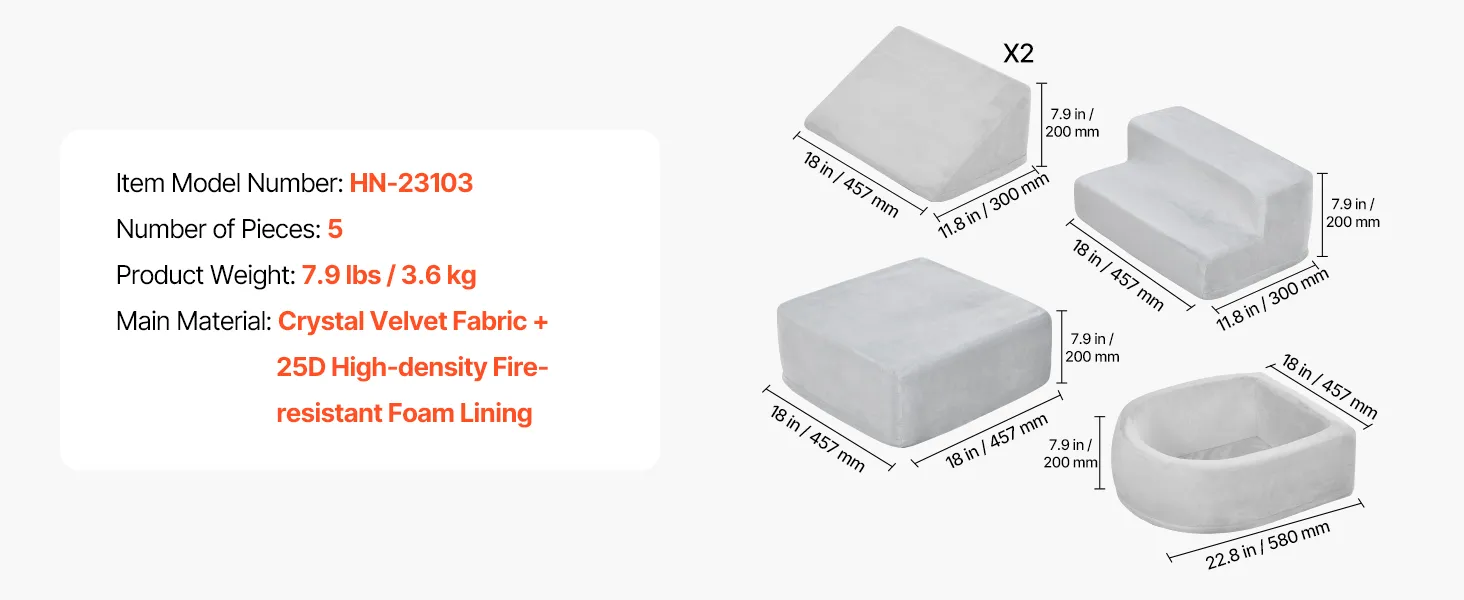 Soft and Resilient: The baby climbing blocks are equipped with ultra-soft velvet fabric and filled with 25D high-density foam for excellent support, making it ideal for babies to climb or walk on. This promotes body coordination, enhances motor skills, and helps absorb impact to avoid injuries from falls. (Allow 48-72 hours for full expansion after unpacking.) NOTE: Need to put the foam into the leather case by yourself.
