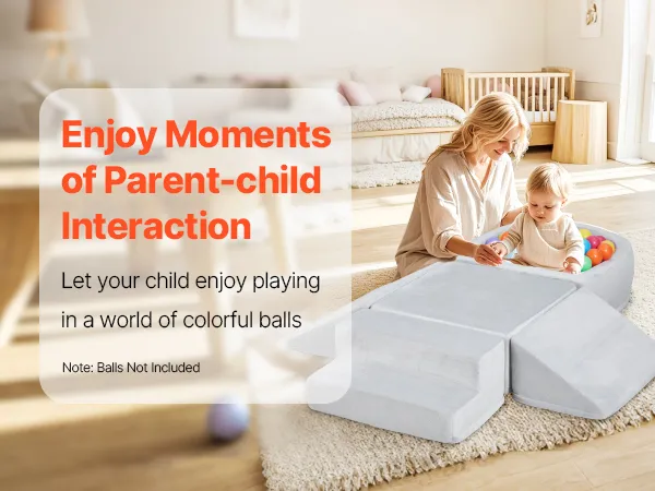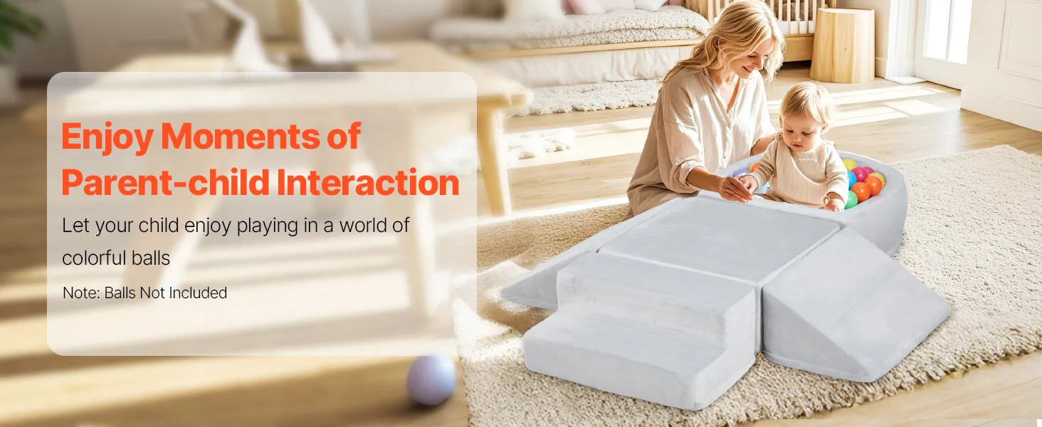 Create Fun Interactive Spaces: The foam climbing blocks include various shape modules such as cubes, slide blocks, and a ball pit. Fill the ball pit with colorful plastic balls to expand your child's sensory world (Balls not included)! The different modules can be freely combined to create a personalized play area, sparking endless imagination and creativity. It’s great for use at home, in early learning centers, or as an ideal gift for your little one.