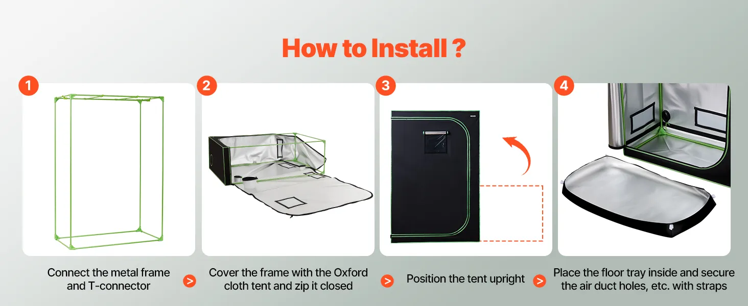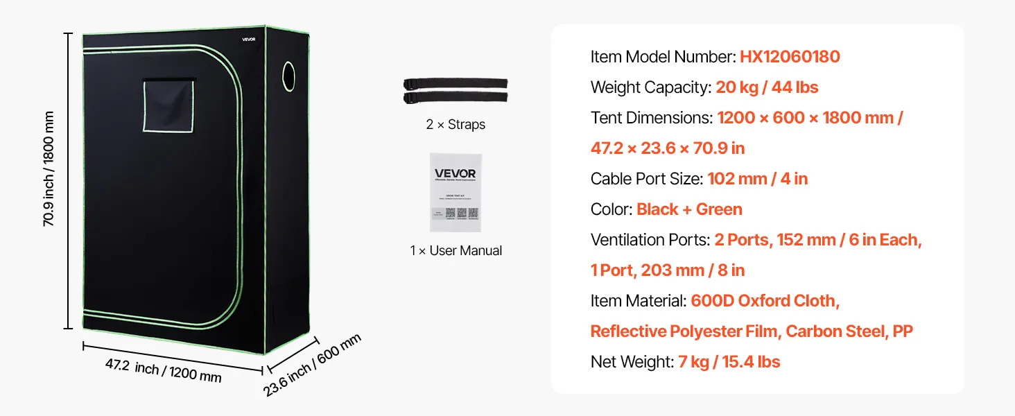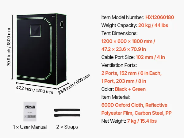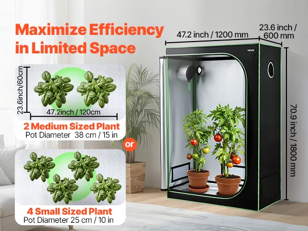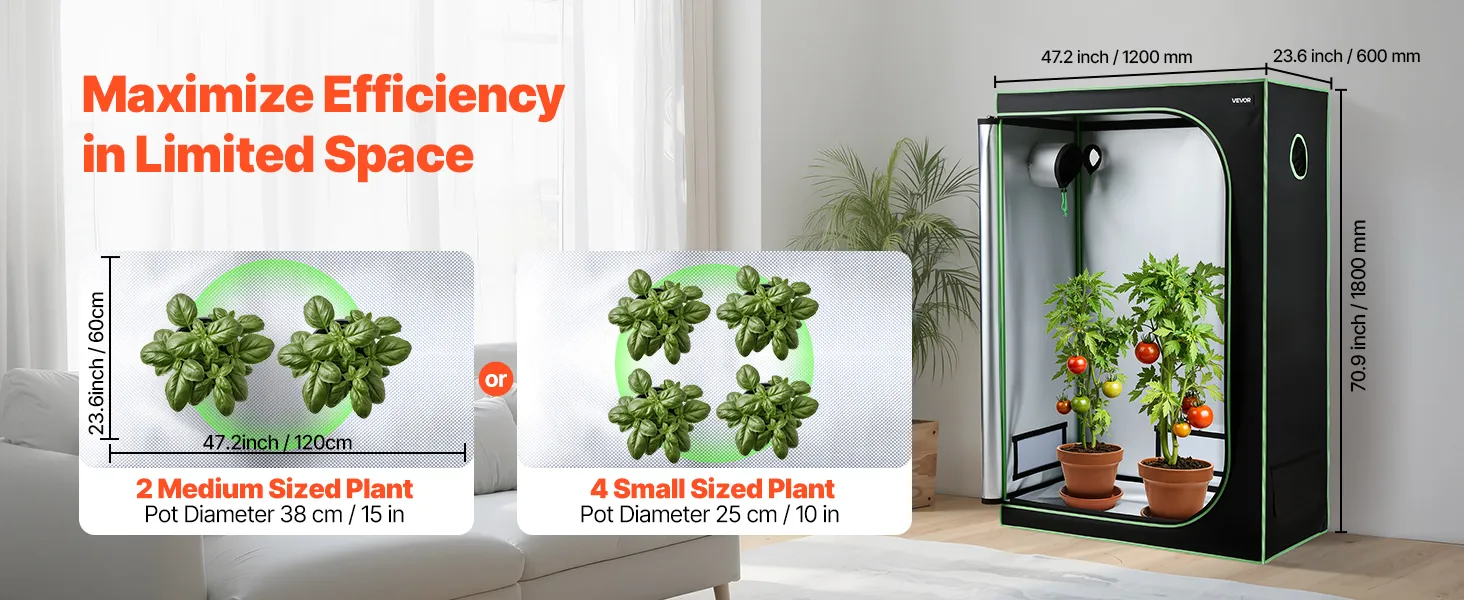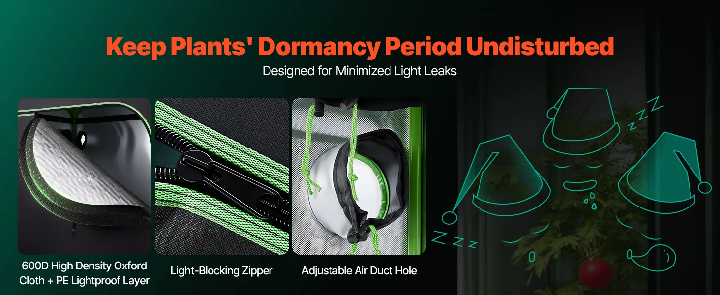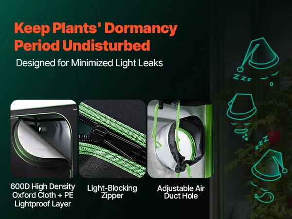 100% reflecterende binnenkant: De binnenkant is gemaakt van polyesterfolie dat lichtreflectie maximaliseert en warmteverlies minimaliseert, wat een gezondere plantengroei bevordert. De buitenkant is gemaakt van duurzaam 600D Oxford-materiaal, dat scheurvast en ondoorzichtig is. Dubbelgevoerde zwarte ritsen sluiten effectief eventuele openingen af.