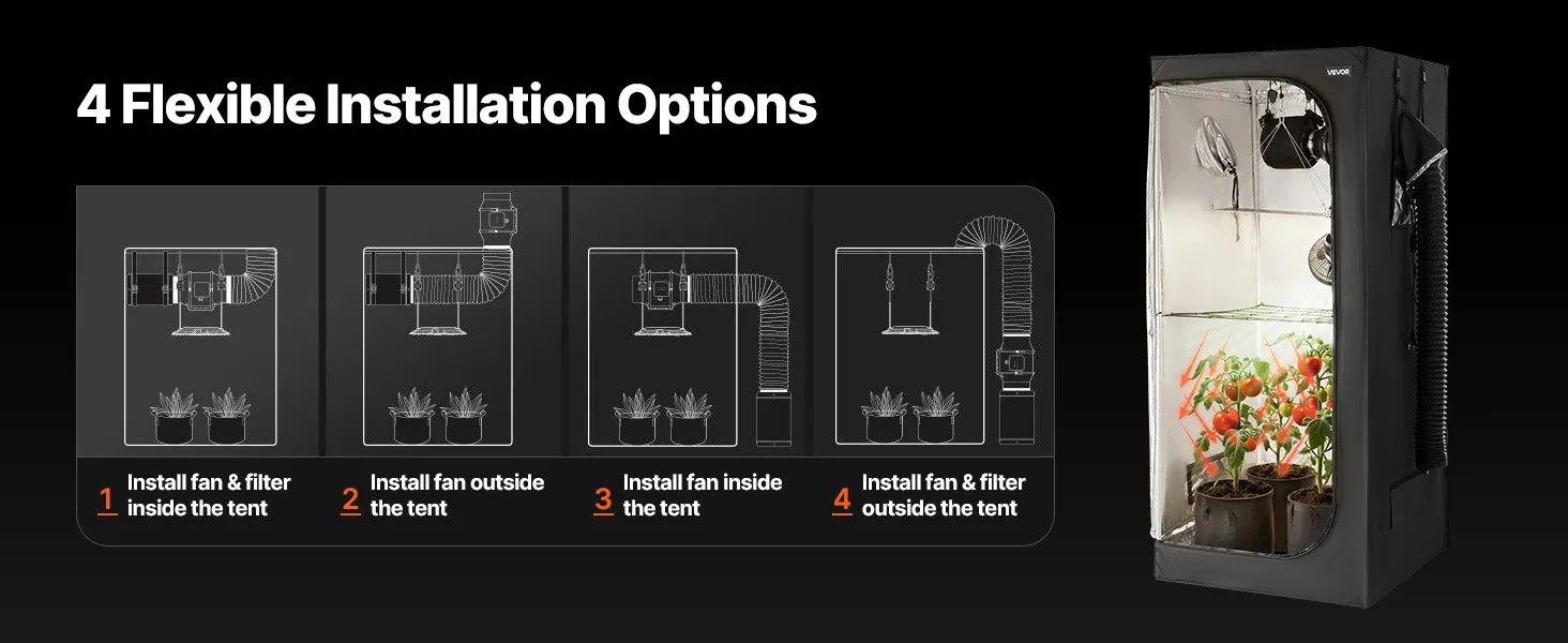 Of u nu de luchtstroom wilt optimaliseren of ruimte wilt besparen, onze kweektenten voor kamerplanten ondersteunen verschillende ventilator- en filteropstellingen, waardoor u flexibel kunt inspelen op verschillende plantbehoeften.