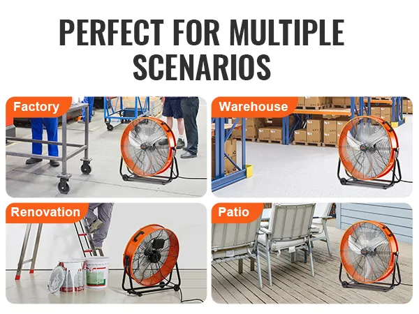 De VEVOR industrieventilator beschikt over een hoogwaardige motor. Het speciale vleugelontwerp verbetert de luchtbeweging en zorgt voor een sterke en stabiele luchtstroom voor een frisse en comfortabele werkomgeving.