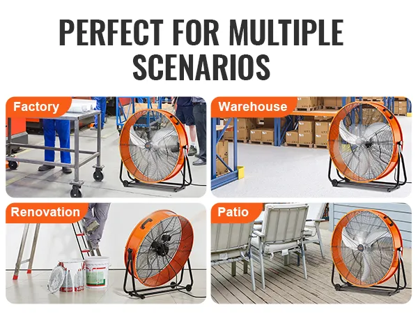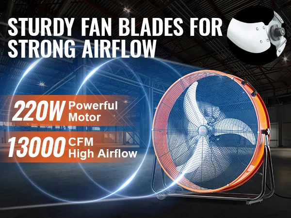 Quiet Operation: This commercial fan features a high-quality motor and wheeled blades that minimize vibration and noise while delivering powerful airflow for efficient ventilation.