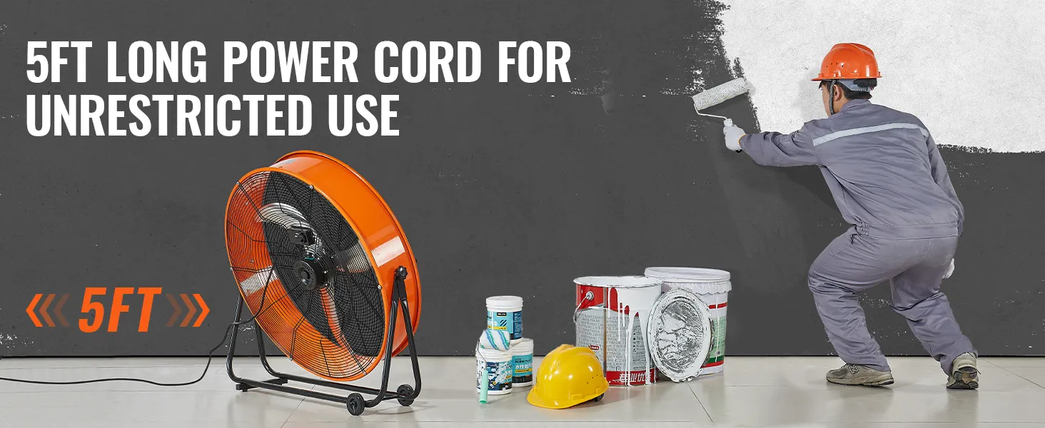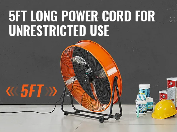 A 5-foot power cord ensures you can place the fan wherever you like without worrying about outlet locations, offering a more flexible ventilation experience.