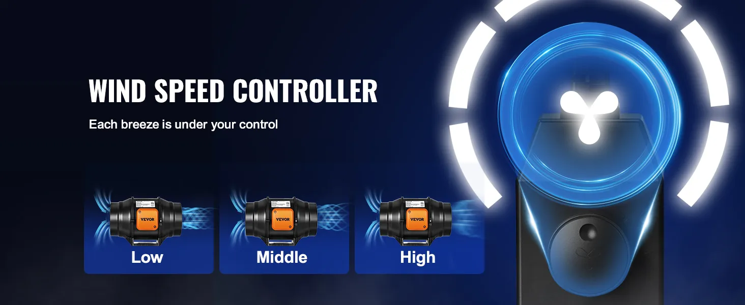 Controle die u kunt voelen: Wilt u op elk moment verschillende luchtstroomsnelheden bereiken om betere ventilatie-effecten te bereiken en toch de controle te behouden? Onze inline luchtkanaalventilator kan worden bediend via de handmatige knoppen. U kunt de snelheid aanpassen aan de ventilatiebehoeften van verschillende omgevingen. Waar wacht je op? Laat jezelf afdrijven!
