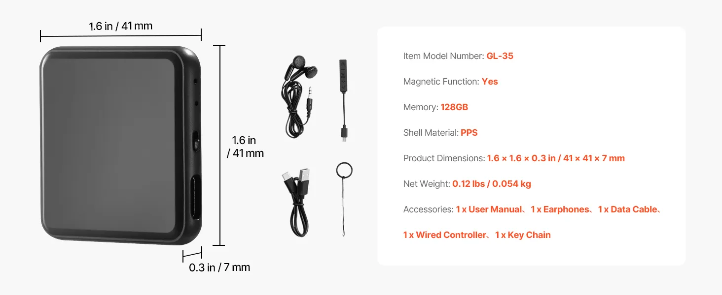 Measuring only 1.6 x 1.6 x 0.3 in and weighing 0.12 lbs, our digital voice recorder slips easily into your pocket for on-the-go. With a 128GB of storage, it holds up to 8730 hours of audio at 32Kbps. 150mAh battery for 10 hours of continuous recording. Connected to a computer or smartphone.