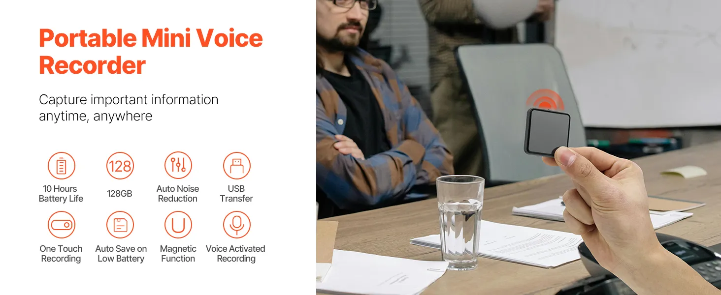 Small in Size, Big on Performance: This magnetic voice activated recorder boasts a sleek, compact design that fits easily into your pocket or bag, making it ideal for on-the-go use. Whether you're capturing interviews, taking class notes, recording meeting minutes, or documenting court proceedings, its portability ensures you're always prepared