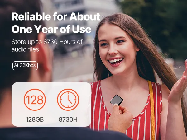 128GB of Storage, Uninterrupted Recording: With a generous 128GB of memory, this digital voice recorder with playback lets you record continuously at 32Kbps for up to a full year. No more constant backups or deleting files