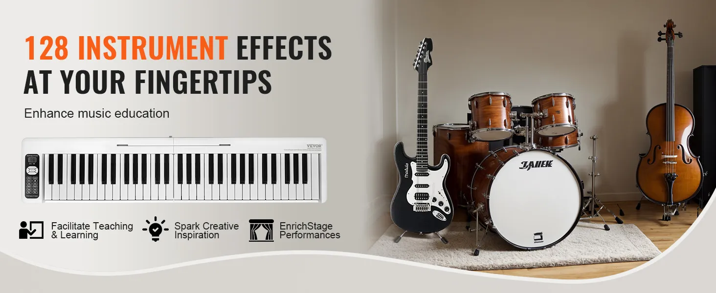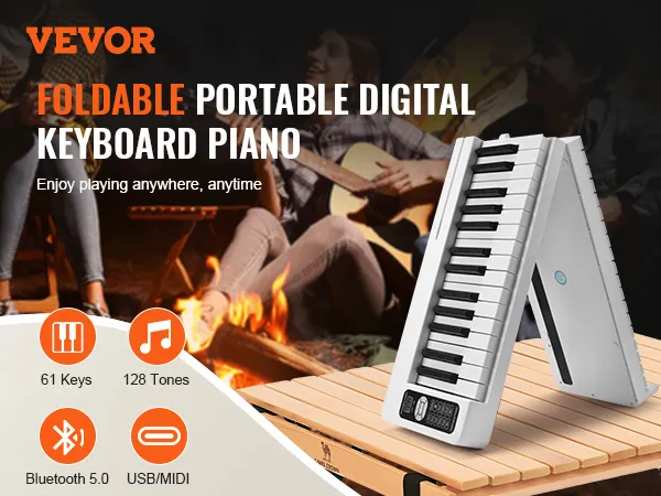 Meeslepend surroundgeluid: ons opvouwbare pianotoetsenbord is voorzien van tweekanaals stereoluidsprekers die rijke en gelaagde tonen leveren die het volledige spectrum van muzikale nuances getrouw reproduceren. Ervaar levensechte geluidskwaliteit met nauwkeurige hoge en diepe lage tonen.