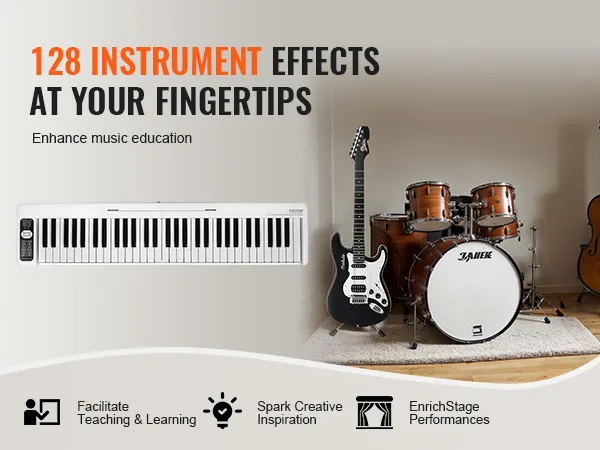 128 standaardtonen, eenvoudig te leren: Ontdek de wereld van de muziek met onze opvouwbare toetsenbordpiano, die 128 verschillende tonen en internationale standaardritmes kan produceren, evenals 21 demosongs. Van klassiek tot hedendaags en alles daartussenin, je kunt verschillende instrumentgeluiden rechtstreeks vanaf het toetsenbord bespelen. Perfect voor het verkennen van verschillende muziekgenres en -stijlen!