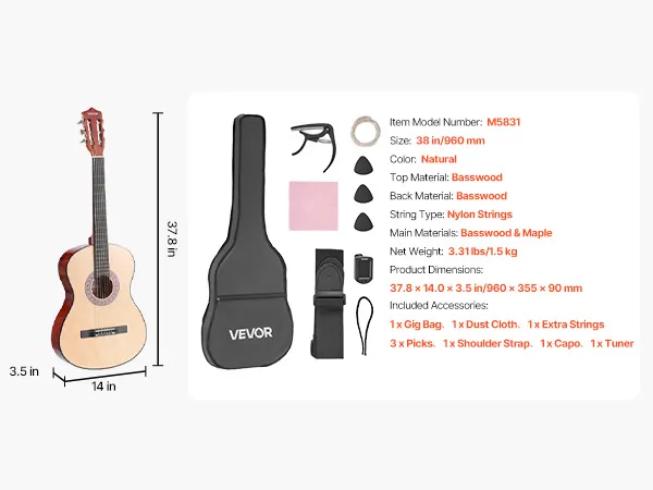 38-inch (960 mm) beginnersset voor klassieke gitaar