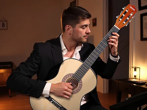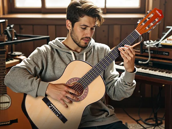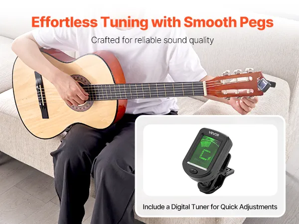 V: Is deze gitaar makkelijk te stemmen? Kunnen beginners ermee overweg? A: Absoluut! De verbeterde stempennen en de meegeleverde digitale tuner zorgen voor soepel en nauwkeurig stemmen. Beginners kunnen gemakkelijk aan de slag met een eenvoudige online videotutorial.