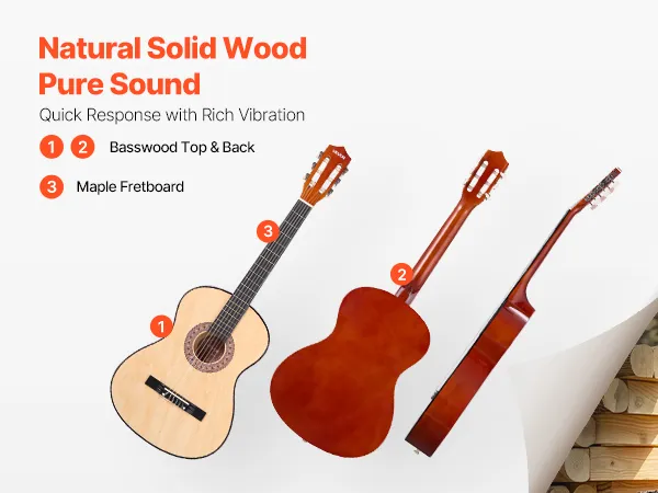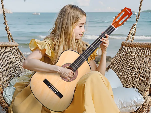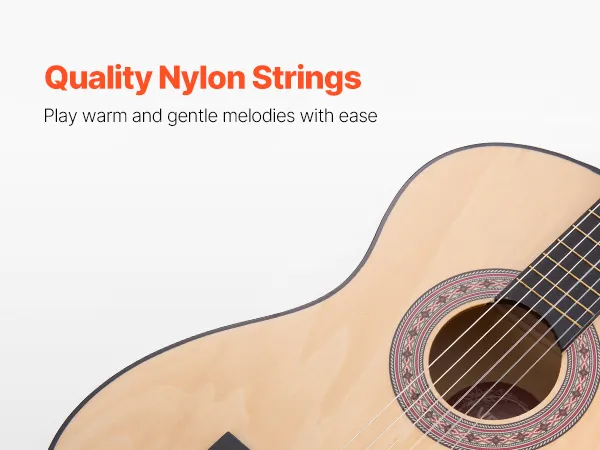 Hoogwaardige materialen: Deze klassieke gitaar, met zijn eersteklas lindehouten boven- en achterblad, biedt een rijke resonantie en structurele stabiliteit. De hoogwaardige nylon snaren zorgen voor een comfortabele en vingervriendelijke speelervaring voor kinderen en beginners.