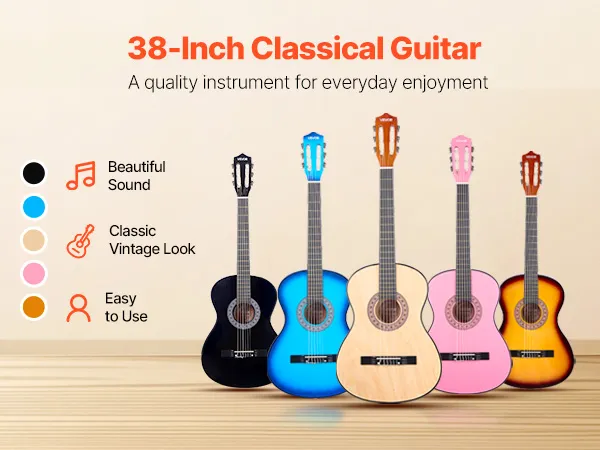 Ideaal voor beginners: Deze startersset voor klassieke gitaren is verkrijgbaar in diverse unieke kleuren, stijlen en maten en is perfect voor beginners, jonge muzikanten, reizende artiesten, muziekleraren of iedereen die een nieuwe hobby ontdekt.