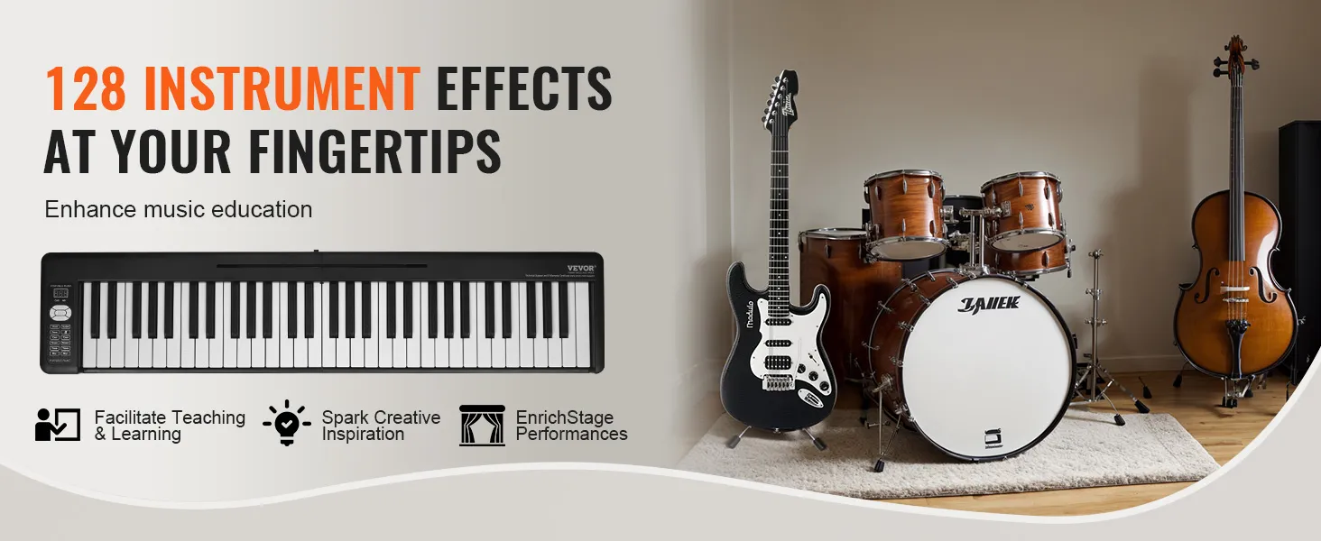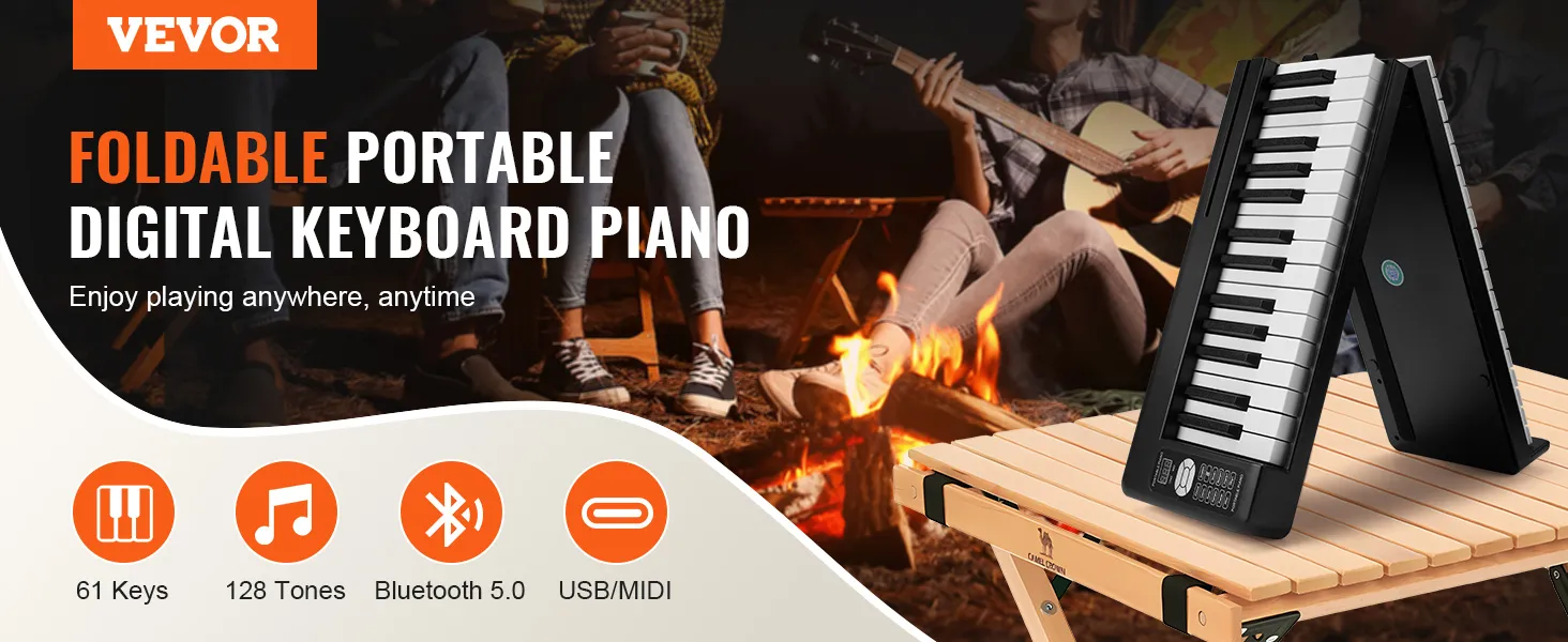 Meeslepend surroundgeluid: ons opvouwbare pianotoetsenbord is voorzien van tweekanaals stereoluidsprekers die rijke en gelaagde tonen leveren die het volledige spectrum van muzikale nuances getrouw reproduceren. Ervaar levensechte geluidskwaliteit met nauwkeurige hoge en diepe lage tonen.