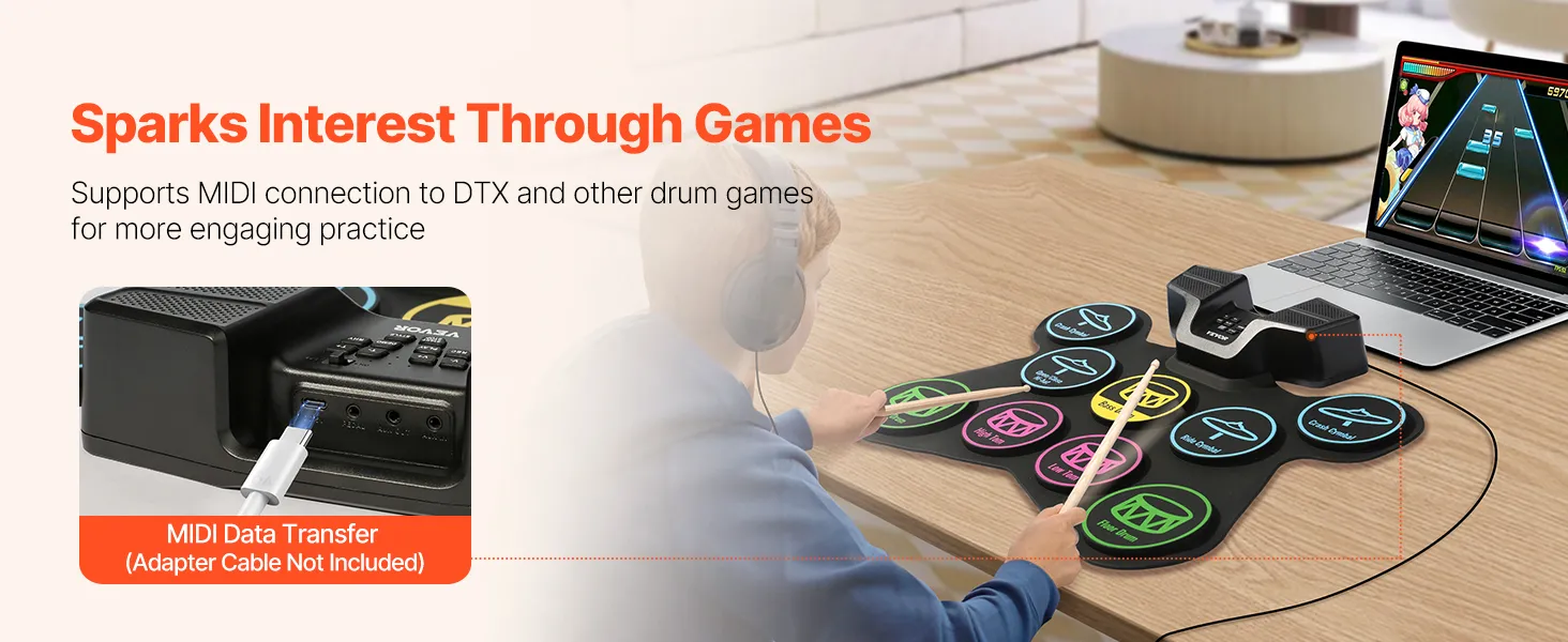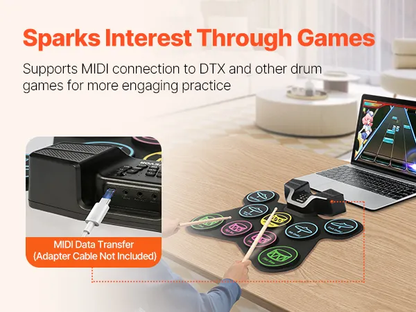 With MIDI support, our kids electric drum set can easily connect to computer or other devices. So that kids can use various music software for interactive learning, making practice more exciting and engaging.