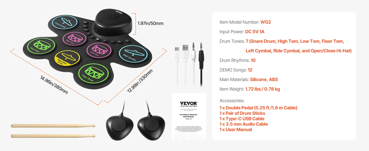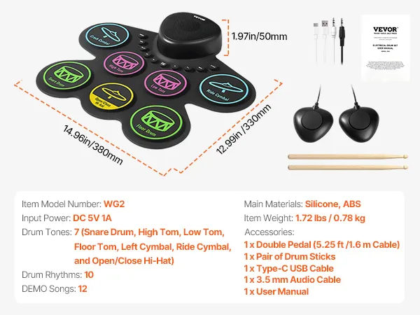 All-Inclusive Accessory Pack: Our digital drum set comes with dual foot pedals, a USB cable, an audio cable, and a pair of drum sticks. Ready to use straight out of the box and ideal for kids aged 3+ to start learning.