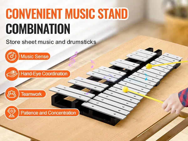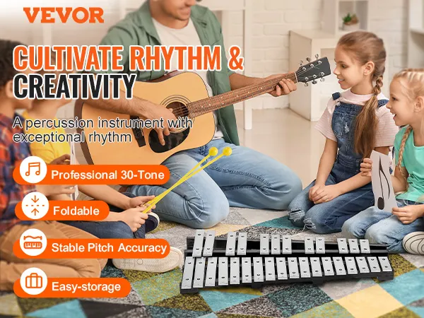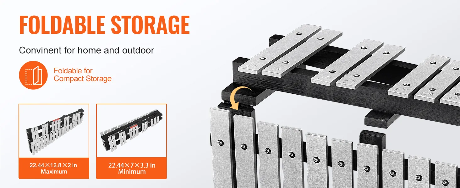Het compacte ontwerp van het VEVOR klokkenspel is ideaal voor thuisgebruik. Het neemt niet veel ruimte in beslag, waardoor het gemakkelijk op te bergen is. Wanneer u het niet gebruikt, kunt u het instrument opvouwen en opbergen om het uit de weg te houden en schade te voorkomen. Ook is het kleine formaat eenvoudig te verplaatsen. U kunt het in verschillende kamers of op verschillende locaties neerzetten. Het ruimtebesparende ontwerp is perfect voor gezinnen met beperkte ruimte. Jonge muzikanten oefenen comfortabel thuis.