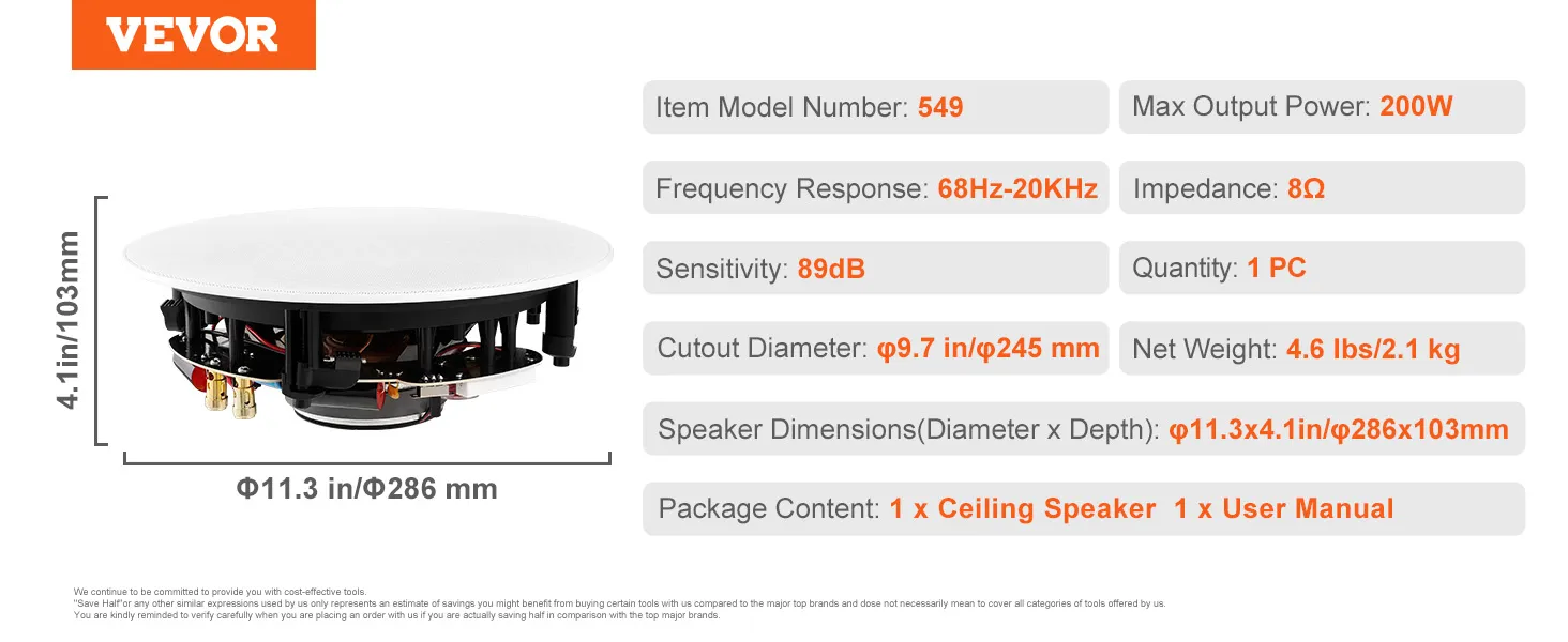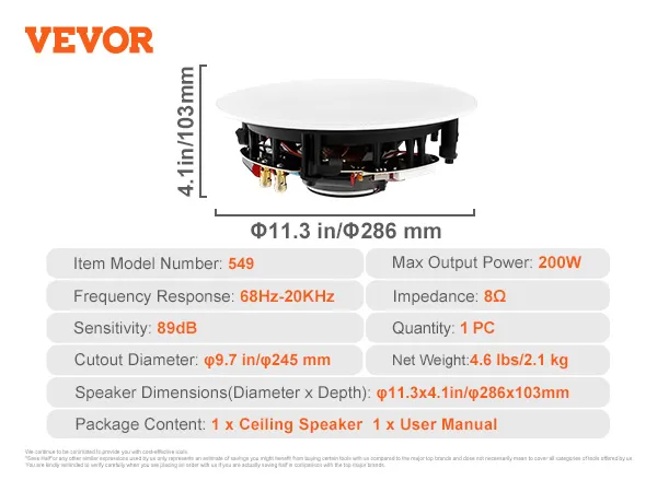 Perfect Fit for Any Space: Our compact 11.3'' diameter ceiling speaker boasts an embedded design for effortless installation and a sleek, unobtrusive look. Whether mounted in-wall or in-ceiling, it blends seamlessly with any decor, transforming your space with rich, immersive sound. Enjoy a stylish, musical upgrade that enhances every room with ease.