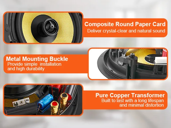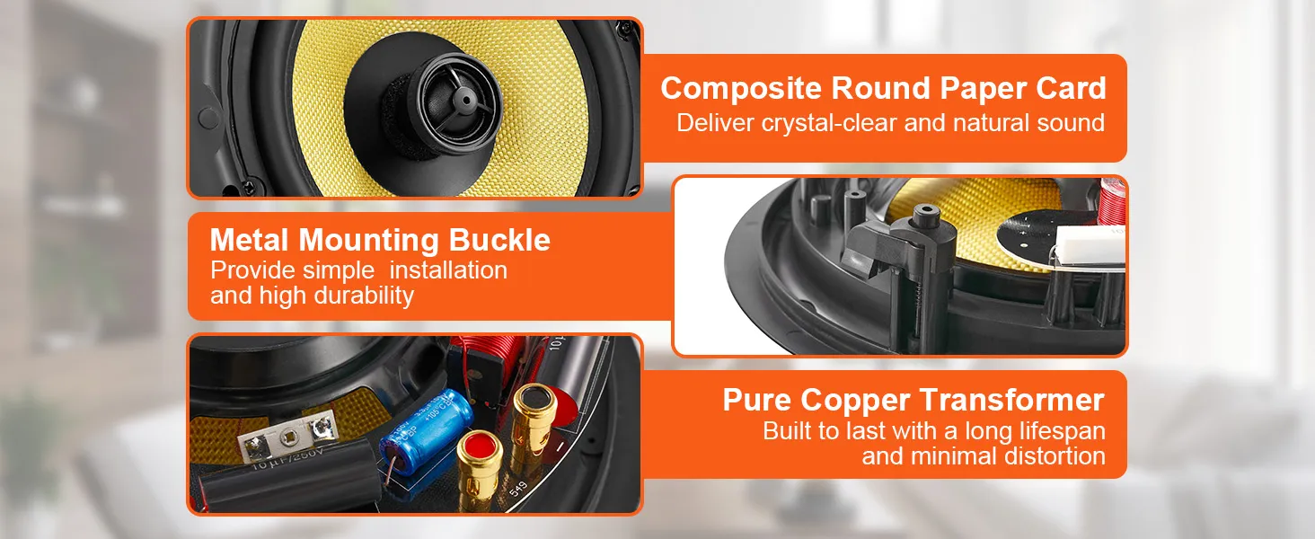 Equipped with a unique acoustic architecture, our ceiling mounted speaker ensures not only clear and natural sound quality but also stable and efficient current transmission. It significantly reduces distortion and interference, providing a pure, uninterrupted audio experience.