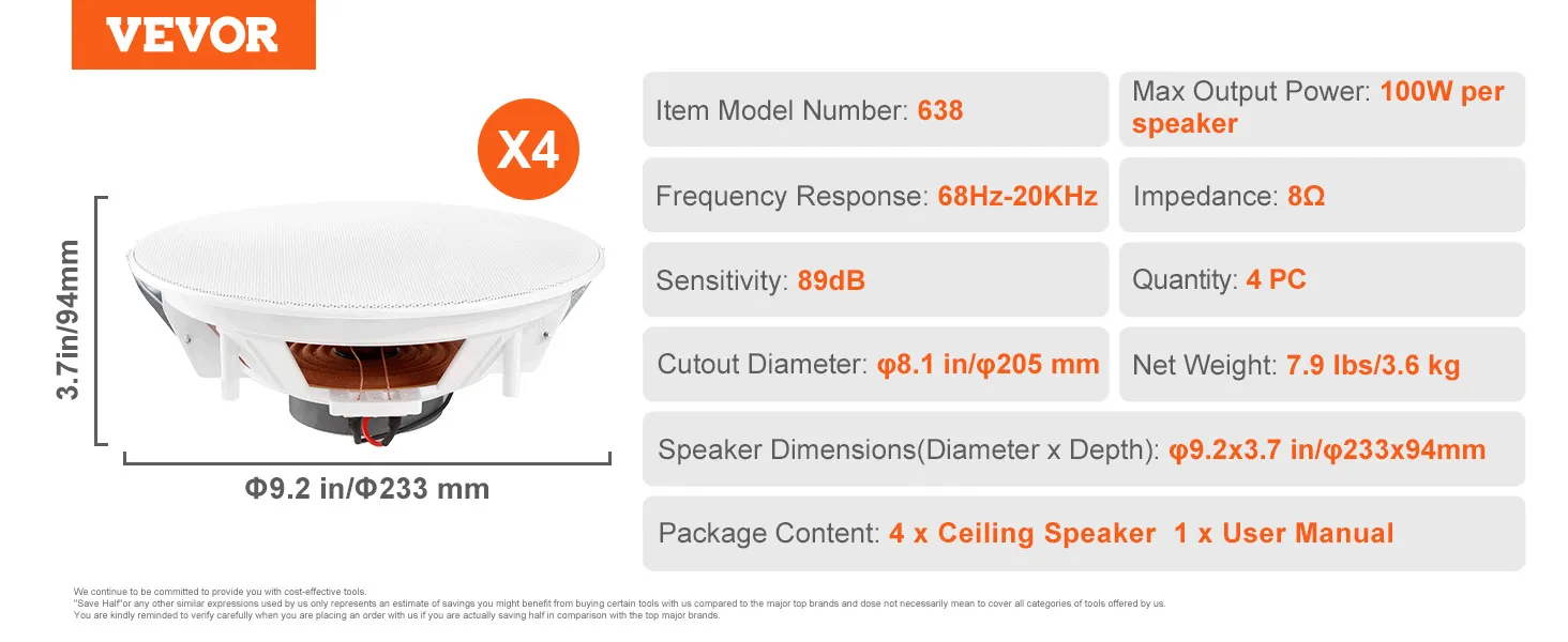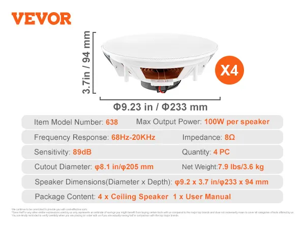 We hebben een lange geschiedenis van VEVOR plafondluidsprekers. Onze VEVOR inbouwluidsprekers zijn gebouwd om lang mee te gaan. Met een robuuste ABs-behuizing zijn onze luidsprekers sterk en betrouwbaar. De rubberen afdichtstrip beschermt tegen stof en vocht. Dit maakt ze geschikt voor zowel binnen- als buitengebruik. U kunt er zeker van zijn dat uw luidsprekers lang meegaan.