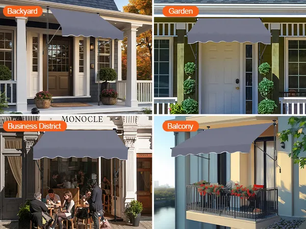 Veelzijdig gebruik: deze terrasoverkappingen zijn ideaal voor tuinen, balkons en patio's en bieden stijlvolle bescherming tegen de zon en comfort, waardoor uw buitenruimte in een ontspannende oase verandert.
