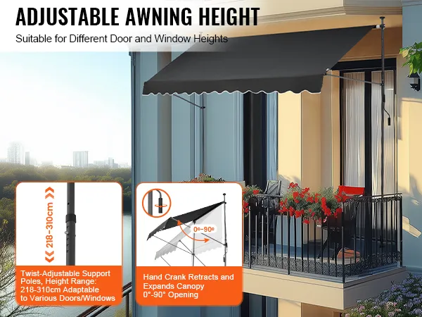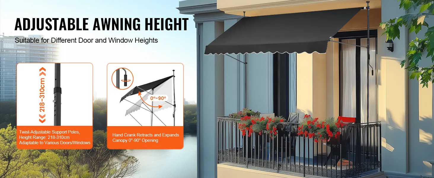 Easy to Adjust: This manual retractable awning allows for height adjustments between 86-122 inches, accommodating various door and window heights, providing flexibility for your outdoor space.