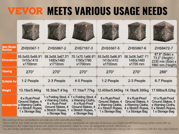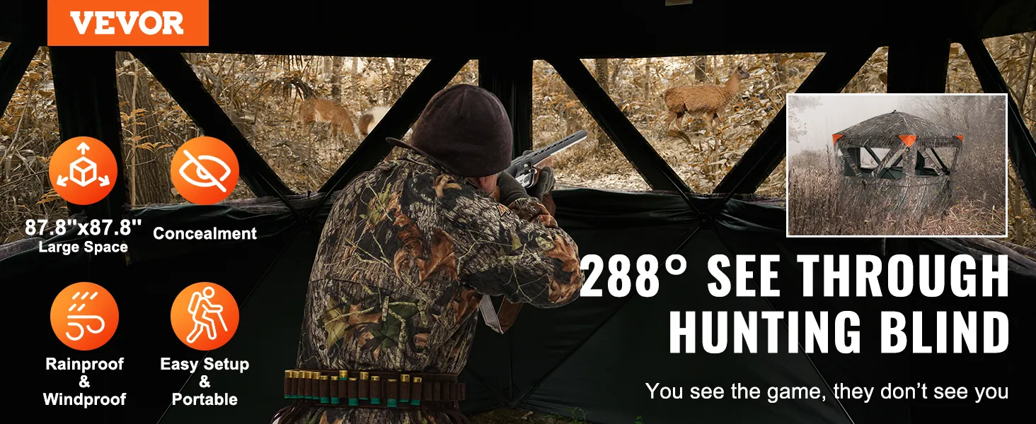 De VEVOR jachthut is gemaakt voor snelle en eenvoudige installatie. Het gebruiksvriendelijke ontwerp maakt het eenvoudig om te monteren. Het afbreken is net zo eenvoudig. Dit bespaart tijd en moeite, waardoor u zich meer op uw jacht kunt concentreren. De hut wordt geleverd met een duidelijke instructiehandleiding. Dit maakt het installatieproces nog eenvoudiger. U hoeft niet te worstelen met ingewikkelde procedures. De eenvoud van de installatie zorgt ervoor dat zelfs beginners hem effectief kunnen gebruiken. Deze hut is perfect voor degenen die een minder gedoe-vrije jachtervaring willen.