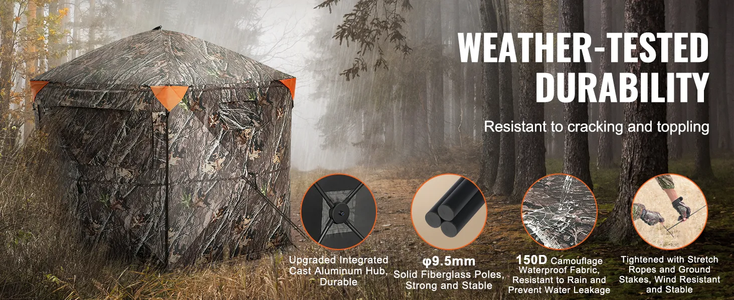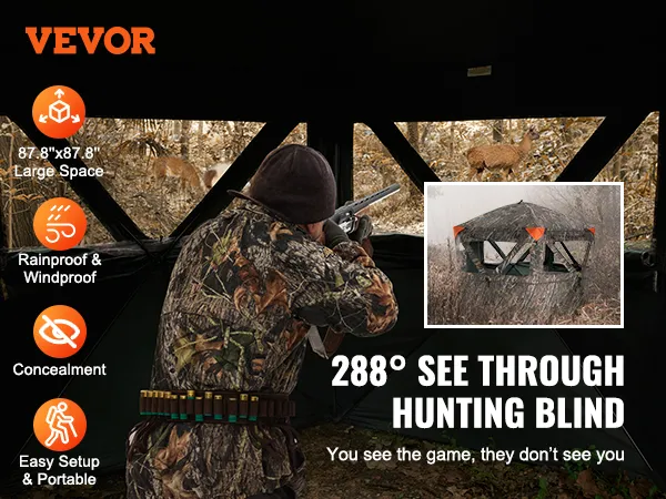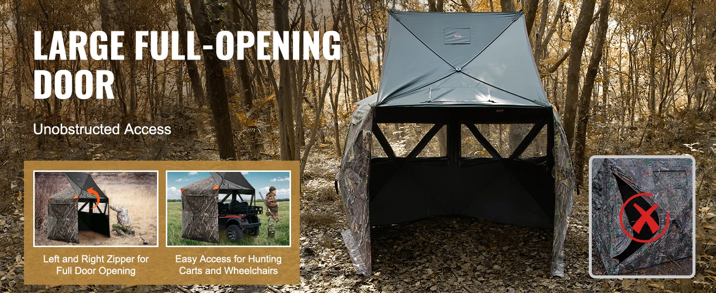 Deze stealth-functie helpt het verrassingselement te behouden. De stille werking zorgt ervoor dat uw bewegingen onopgemerkt blijven. Dit vergroot uw kansen op een succesvolle jacht, aangezien het ontwerp van de VEVOR-jachthut gericht is op het minimaliseren van geluid. Het is ideaal voor jagers die waarde hechten aan stealth. U kunt zich vrij bewegen binnenin zonder u zorgen te maken over het maken van geluid of in de problemen komen.