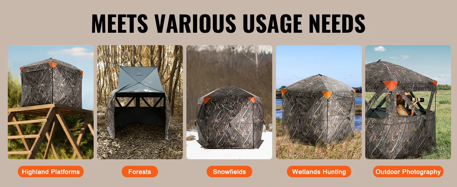 Het is geschikt voor zowel de jacht op herten als op kalkoenen. Het ontwerp is afgestemd op de behoeften van verschillende soorten wild. U kunt het gebruiken voor verschillende jachtseizoenen. Omdat u meerdere dieren kunt volgen en jagen, is het een waardevolle aanvulling op uw jachtuitrusting. Uw jachtuitrusting is veelzijdig, waardoor het het hele jaar door nuttig is voor de jacht. Dit betekent dat u altijd klaar bent om deze blinde jachtuitrusting te gebruiken. Dankzij de veelzijdigheid kunt u het het hele jaar door gebruiken. Dit maakt het een ideale keuze voor fervente jagers.