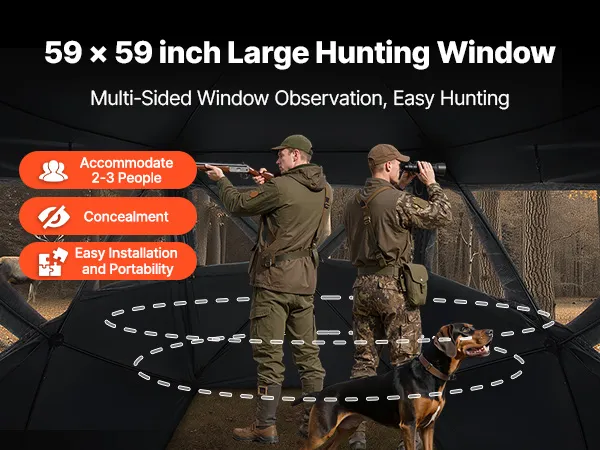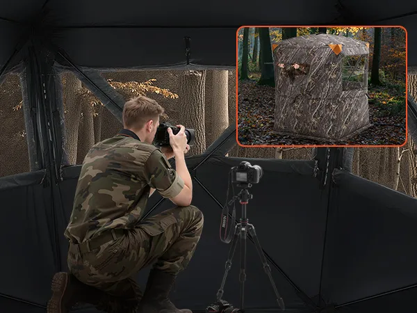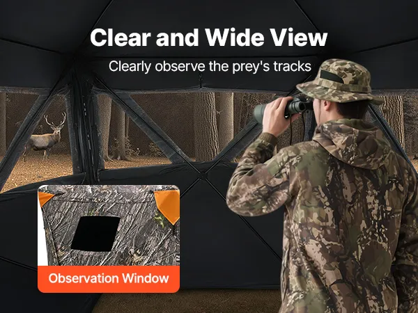 Onze jachttent beschikt over een ontwerp met meerdere ramen en kijkhoeken. Hierdoor heeft u een onbelemmerd zicht, zodat u dieren gemakkelijk kunt observeren en nauwkeurig kunt schieten.