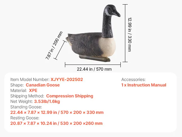 Deze Canadese ganslokvogel, gemaakt van XPE-materiaal, is stevig en duurzaam. Hij is bovendien samendrukbaar, waardoor hij compact en gemakkelijk mee te nemen is. Je kunt hem gemakkelijk opbergen wanneer je hem niet gebruikt en er weer uithalen wanneer je hem nodig hebt!