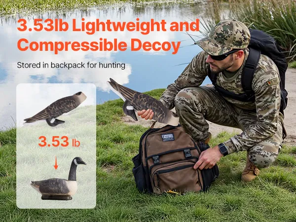 Compact op te bergen en gemakkelijk mee te nemen: Deze Canadese ganslokvogel is gemaakt van XPE-materiaal en is schokbestendig en duurzaam. De complete set weegt slechts 1,6 kg en is compressiebestendig voor compacte opslag met minimale ruimtevereisten.